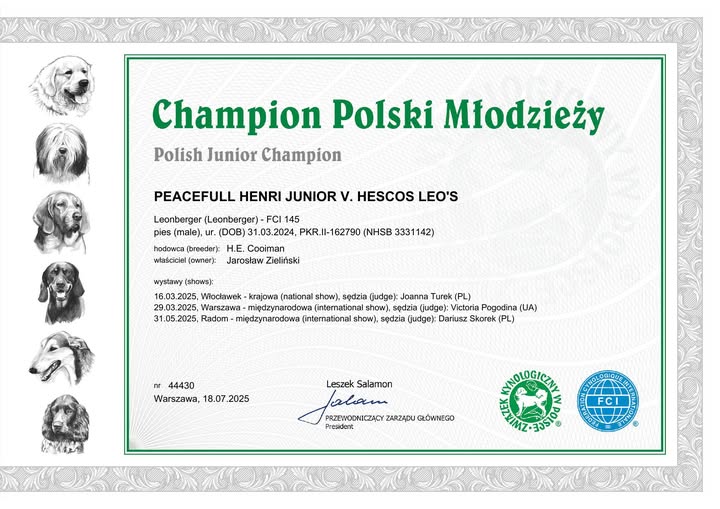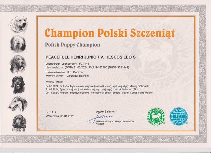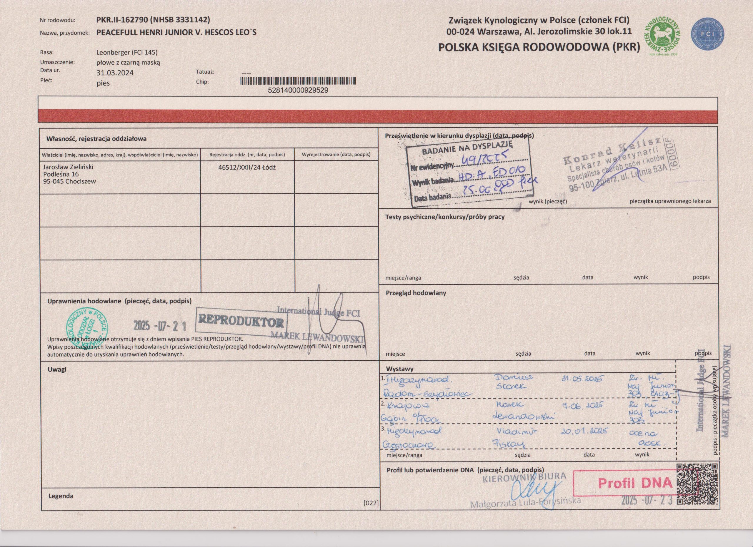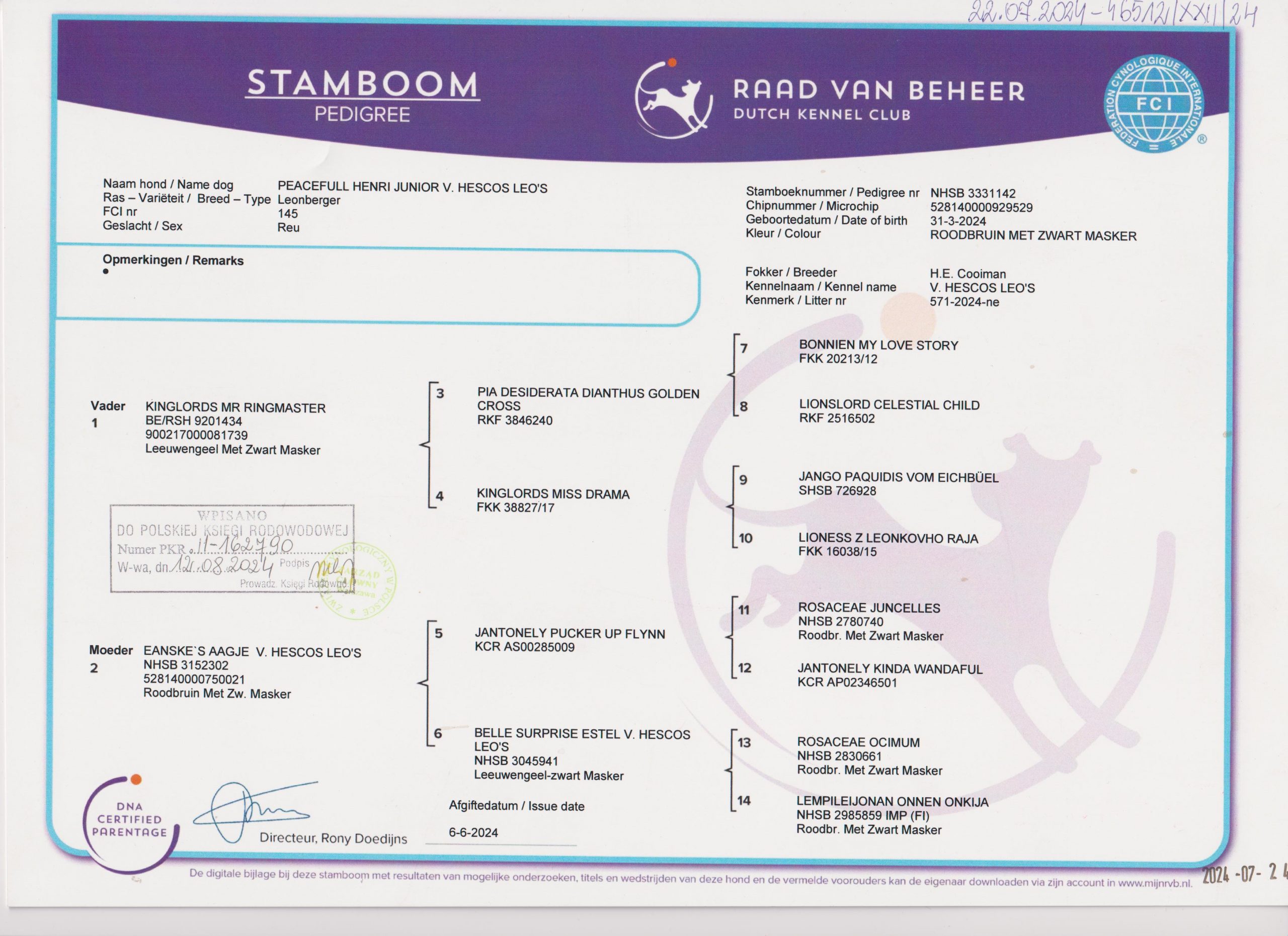 LPN1, LPN2, LPPN3, LEM – wolny po rodzicach /Kinglords Mr Ringmaster, Eanske S.Aagle V.Hescos Leo’s /